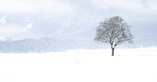 雪積もる枝の先にも